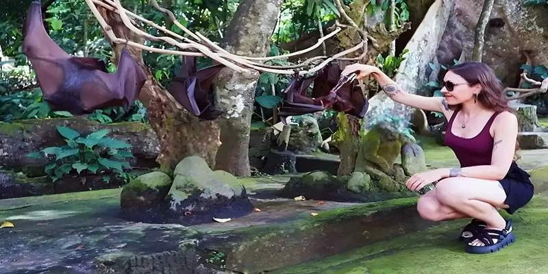 This is Alas Kedaton Monkey Forest & Flying Foxes, tucked away in the middle of Bali, which has a great mix of wildlife and excitement. This forest is in Tabanan, home to hundreds of happy, long-tailed macaques. You can also ride a flying fox over the forest for a unique experience. This place has something for everyone, whether you love animals, need a rush of energy, or just want to get in touch with nature. You can plan your trip to Alas Kedaton with this information.