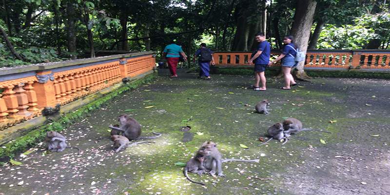 It's common to see monkeys jumping from tree to tree or playfully interacting with visitors. The monkeys are not shy and often approach tourists, especially if they have food. However, it's advisable not to feed them, as it can encourage bad behavior or cause them to become overly reliant on human food.